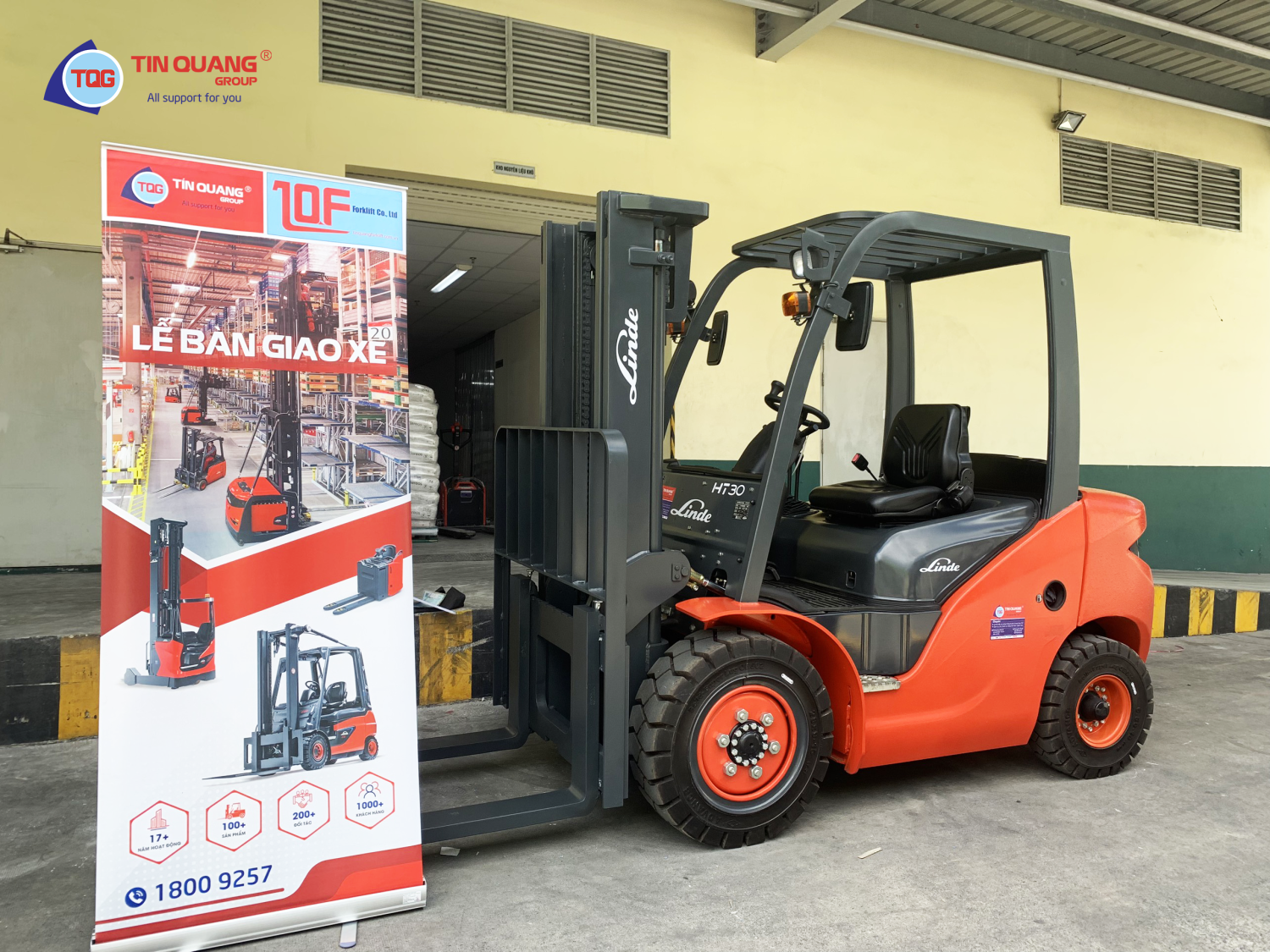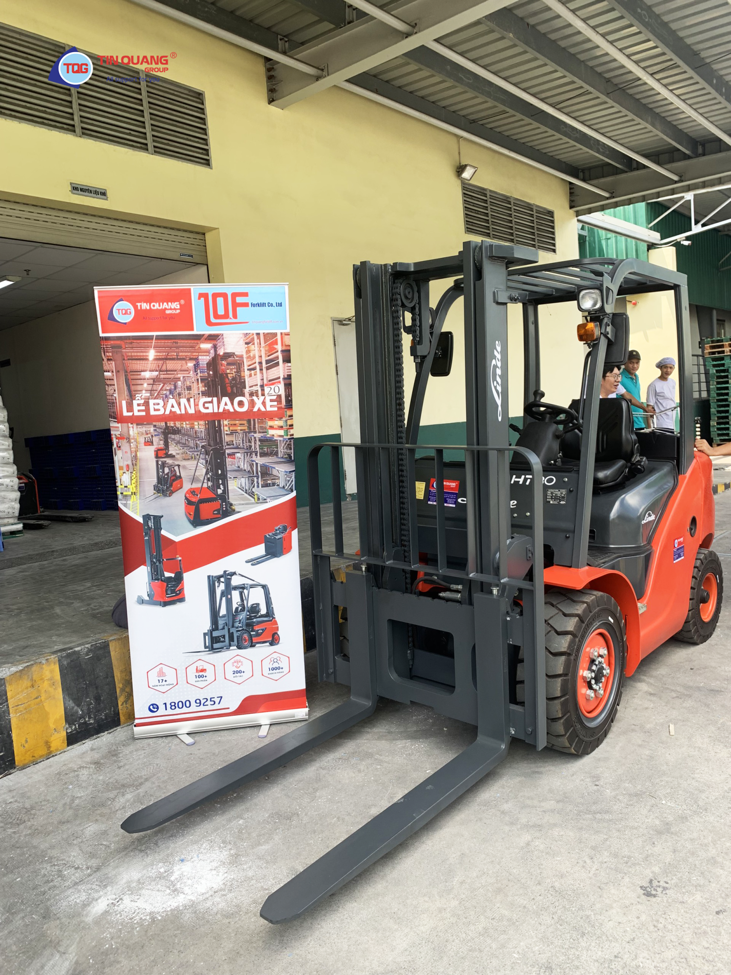 Last week, Tin Quang Group was present at the warehouse of a food company customer in District 7, Ho Chi Minh City to hand over the HT30D diesel forklift equipment.