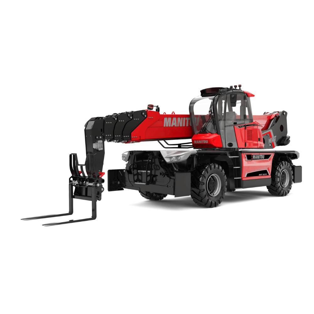 The MRT-X 3570 is a powerful all-terrain rotating telescopic handler. This 3-in-1 machine is a telescopic handler, winch and aerial work platform with a multitude of compatible attachments for versatility and performance on your construction and industrial sites.