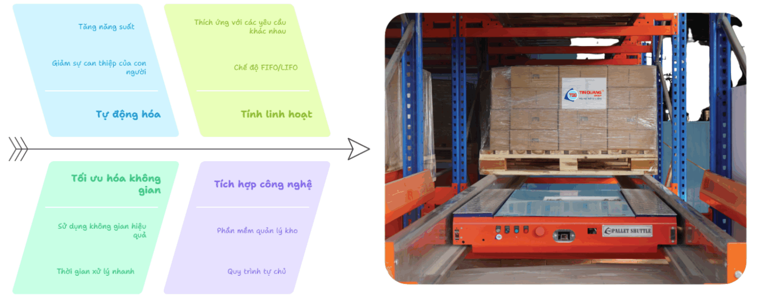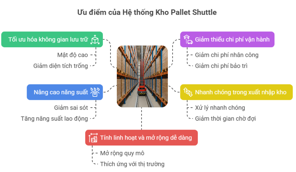 Ưu điểm của hệ thống Kho Pallet Shuttle