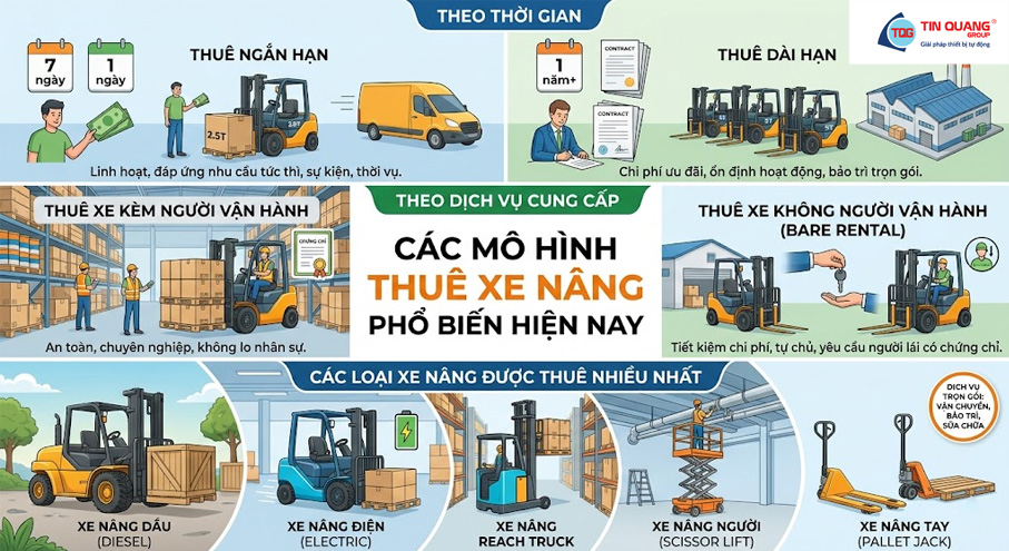 Các mô hình thuê xe nâng phổ biến hiện nay